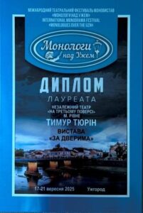 З 17 по 21 вересня 2025 року в місті Ужгород зібралися талановиті театральні колективи та митці з різних країн, аби поділитися своїм мистецтвом. Тимур Тюрін гідно представив наш університет виставою «За дверима», яка отримала високу оцінку журі та глядачів.