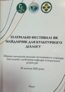На кафедрі театральної режисури відбувся науково-методичний семінар з історії та практики «Театральні фестивалі як майданчики культурного діалогу», проведений у межах декади художньо-педагогічного факультету та з нагоди 85-річчя Рівненський державний гуманітарний університет 28 жовтня 2025 року.